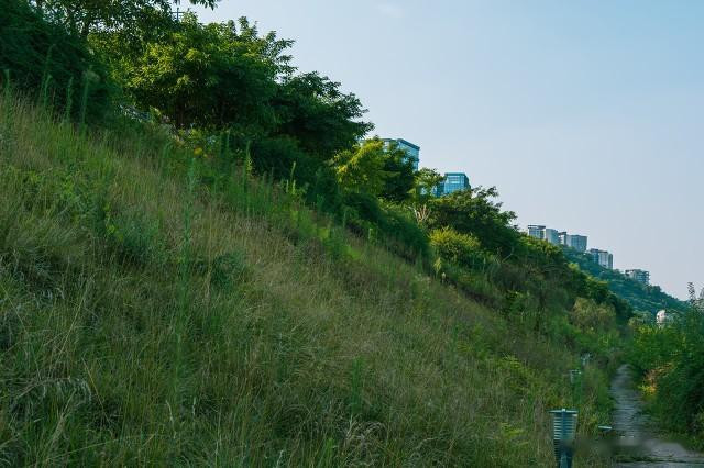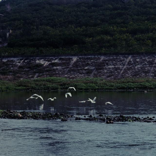 踩着嶙嶙乱石,抓住长长藤蔓。衣服里面的汗与外面的雨,流着下着。突然出现一个陡坡,接近90度,约3米高,笔直地耸立面前。楚试了试,爬不上去,只好在高过人的荆棘丛中探索徐行。终于从右侧不远处跨过爱吃蔷薇叶的大毛虫,登上了陡坡。展现在面前的是一块不大的平地,地上爬满了葛藤。我们靠在一把伞下小憩,俯瞰小城全景。洪江城静静地睡在老鸦坡怀里,逶迤的沅巫两条河流,似绸带在洪江洲缠成了结。喧嚣和世俗离我们很远很远,高远的苍穹迷迷蒙蒙,看不清远处是山的边缘还是云的霓裳。沅江大道耸立的楼房,鳞次栉比。江边笔直的长堤上,樟树、冬青树、柳树组成一道绿色屏障。大桥横越巫水河上,沅巫汇合之处停泊着垂钓的小舟,悠悠摇曳。老鸦坡顶的电视天线台与我们遥遥相望。正如古诗所说“画桥如虹屋参差,半成图画半成诗。”蓦地,楚发现了一群大约有30余只水鸟,那是一群白鹭,雪白的羽毛衬托在浑浊的河面背景上,那么显眼醒目。它们从山那边飘然落下,集群成排齐整地贴着水面上下翻飞,忽而似跌水中,忽而欲冲蓝天,未及片刻,又拍打着翅膀,沿着来路飞了回去。那远去的身影,飘飘忽忽,纯是游动着的诗魂,变奏着无声的生命之歌。雨,还在淅淅沥沥下。我们从袋里取出卤豆腐、酸萝卜和饮料,拌合着清新的毛毛雨,感觉到从未品尝过的香甜。