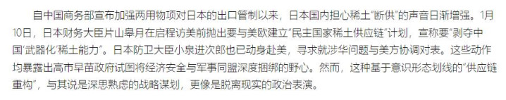 第二件事同样玩得不光彩,日本财政大臣片山皋月最近抛出要与美欧建立“民主国家稀土供应链”计划,宣称要“剥夺中国‘武器化’稀土能力”。